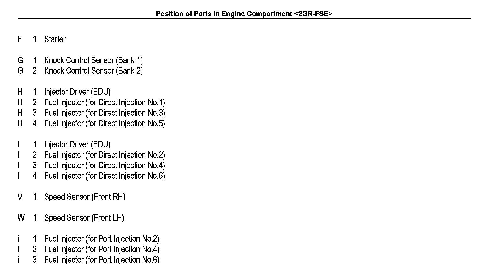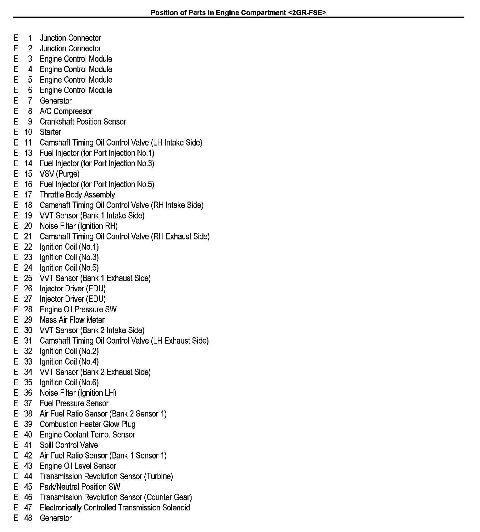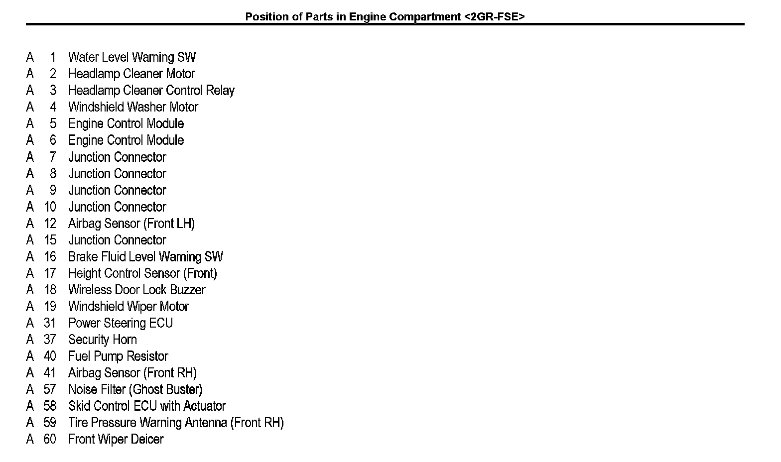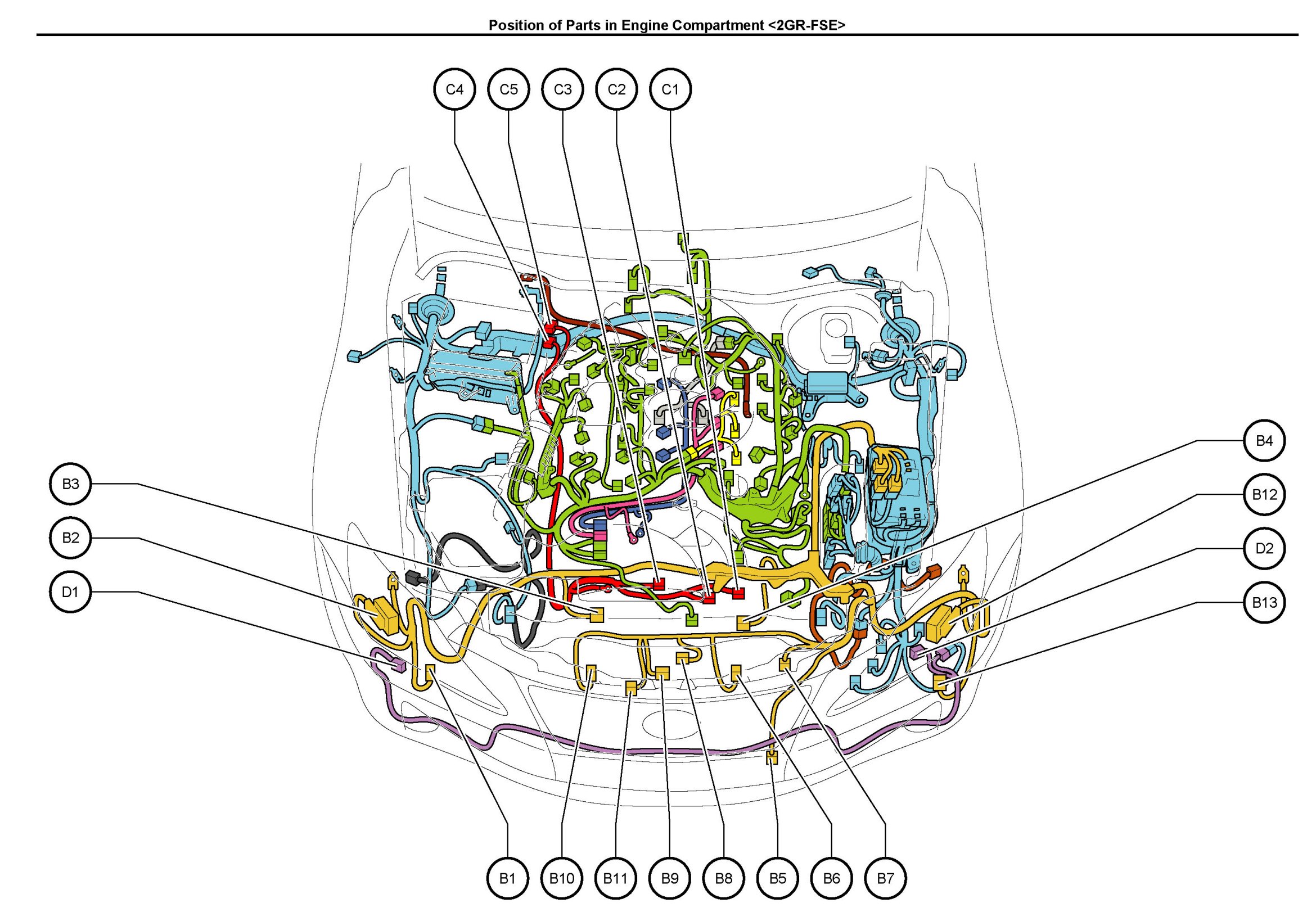 Position of Parts In Engine Compartment