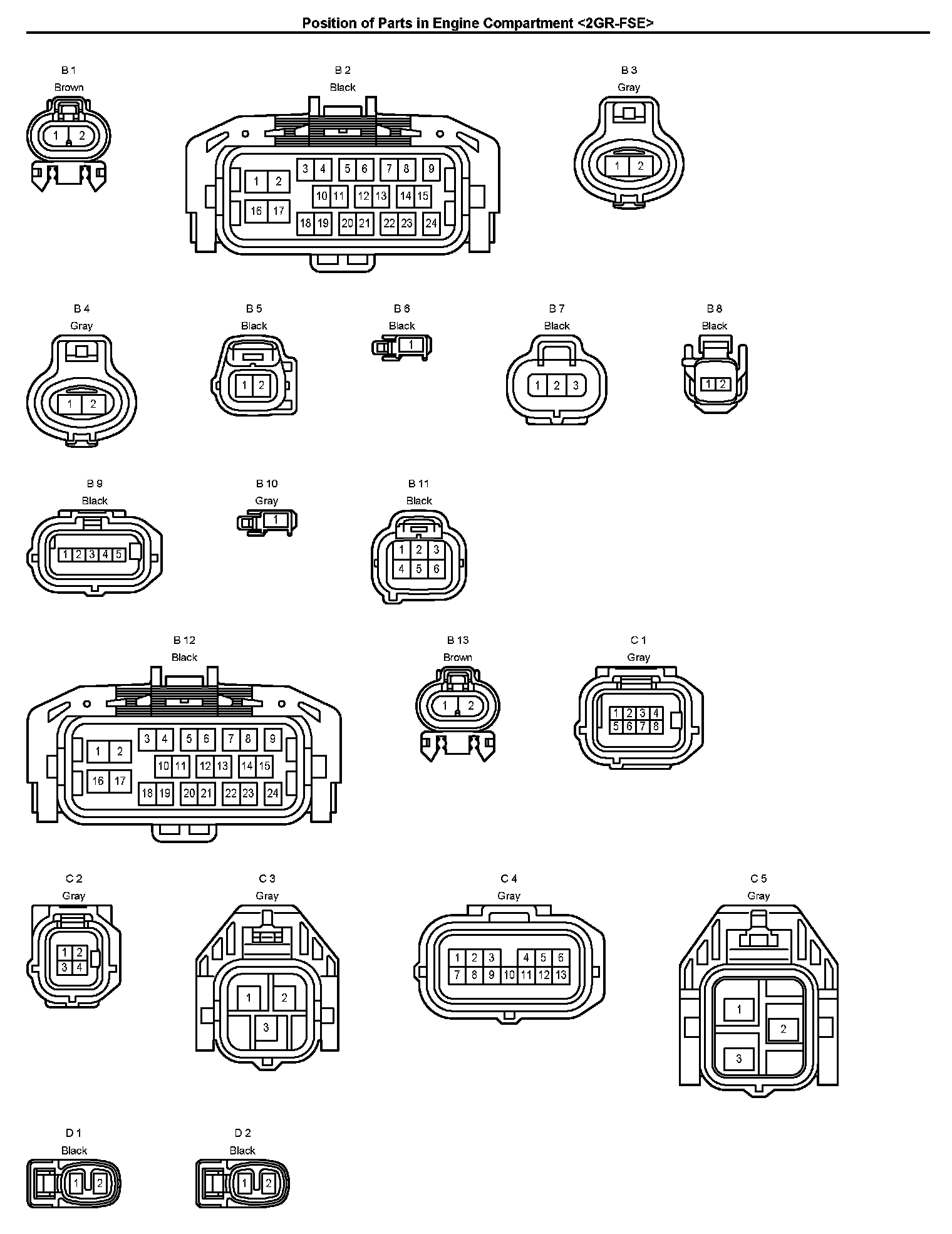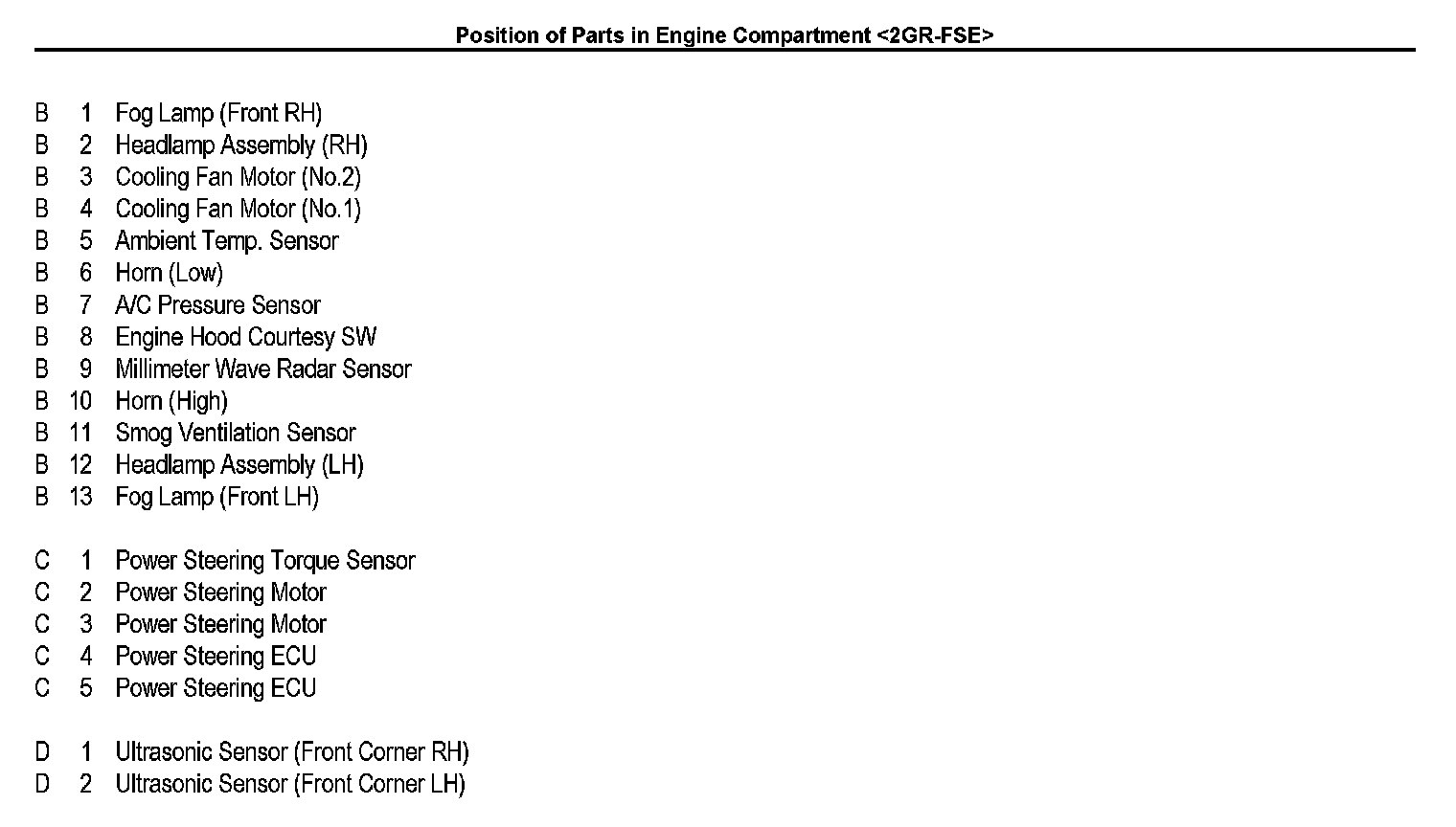 Position of Parts in Engine Compartment:
