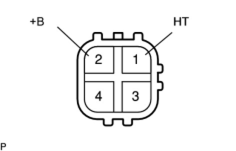 (b) Measure the heater resistance between terminals 1 (HT) and 2 (+B) of the sensor.