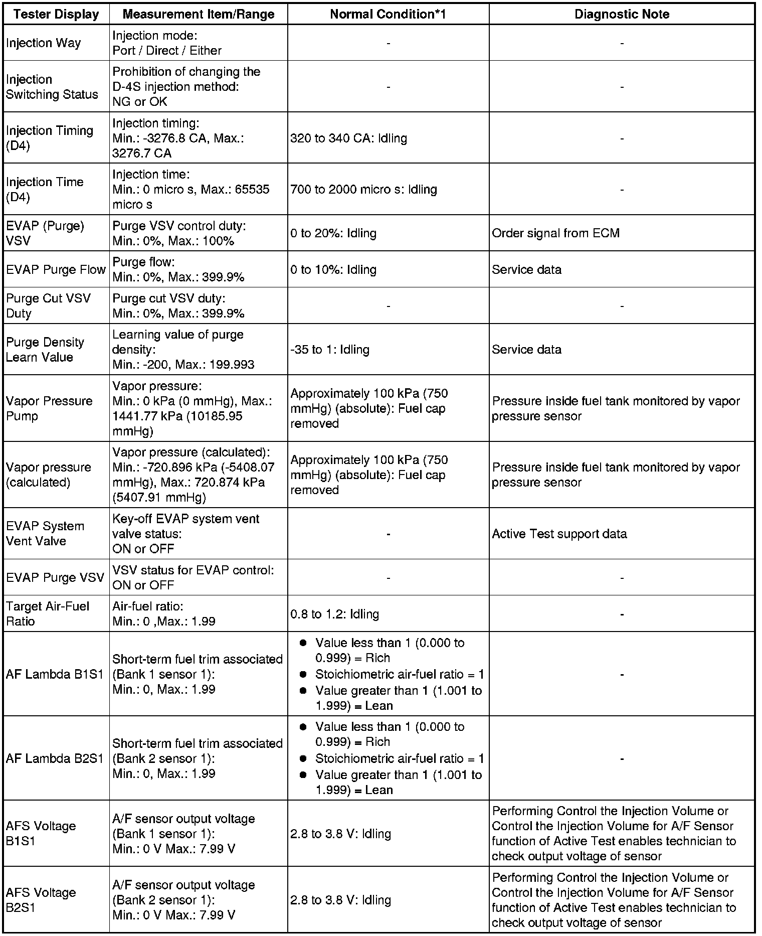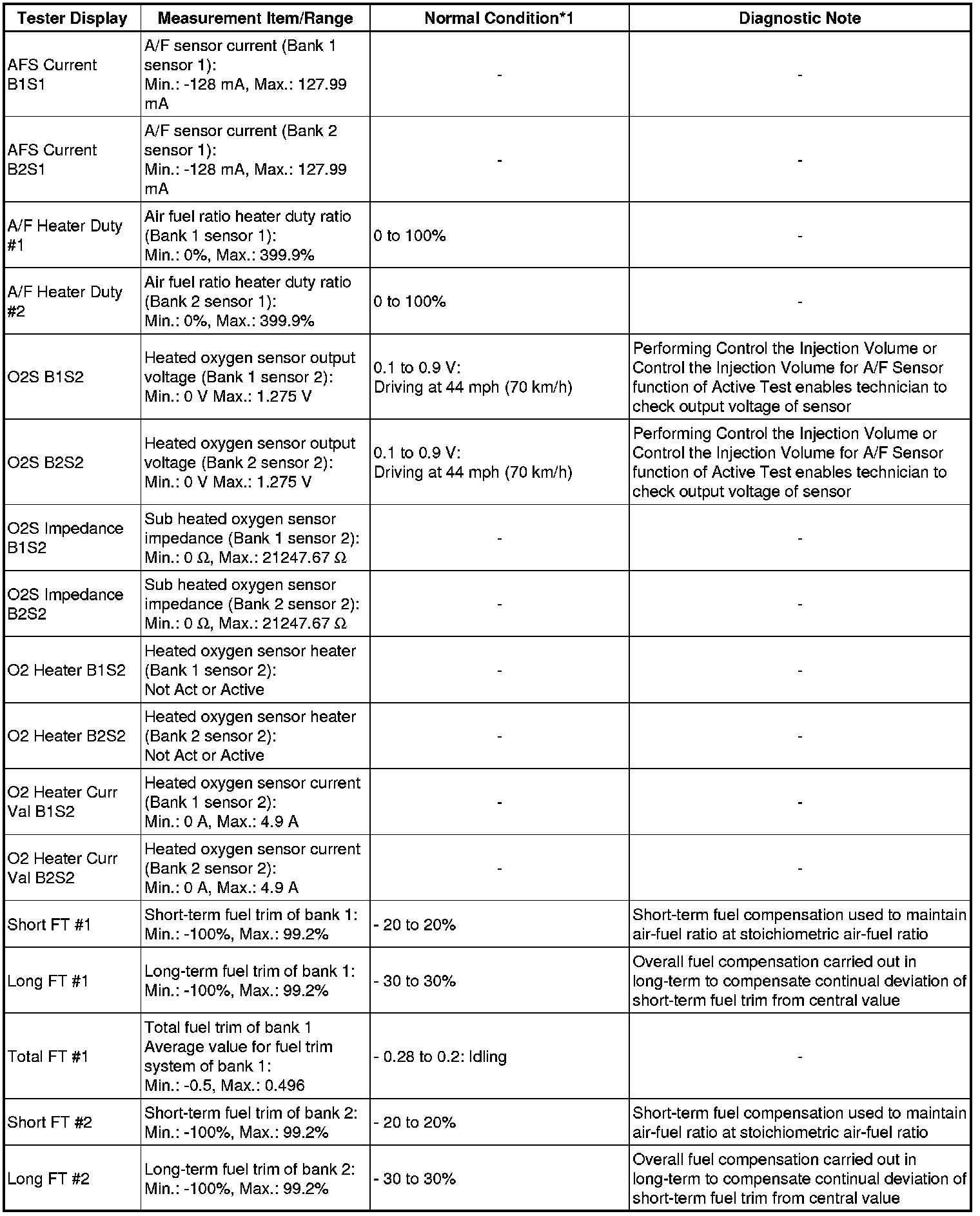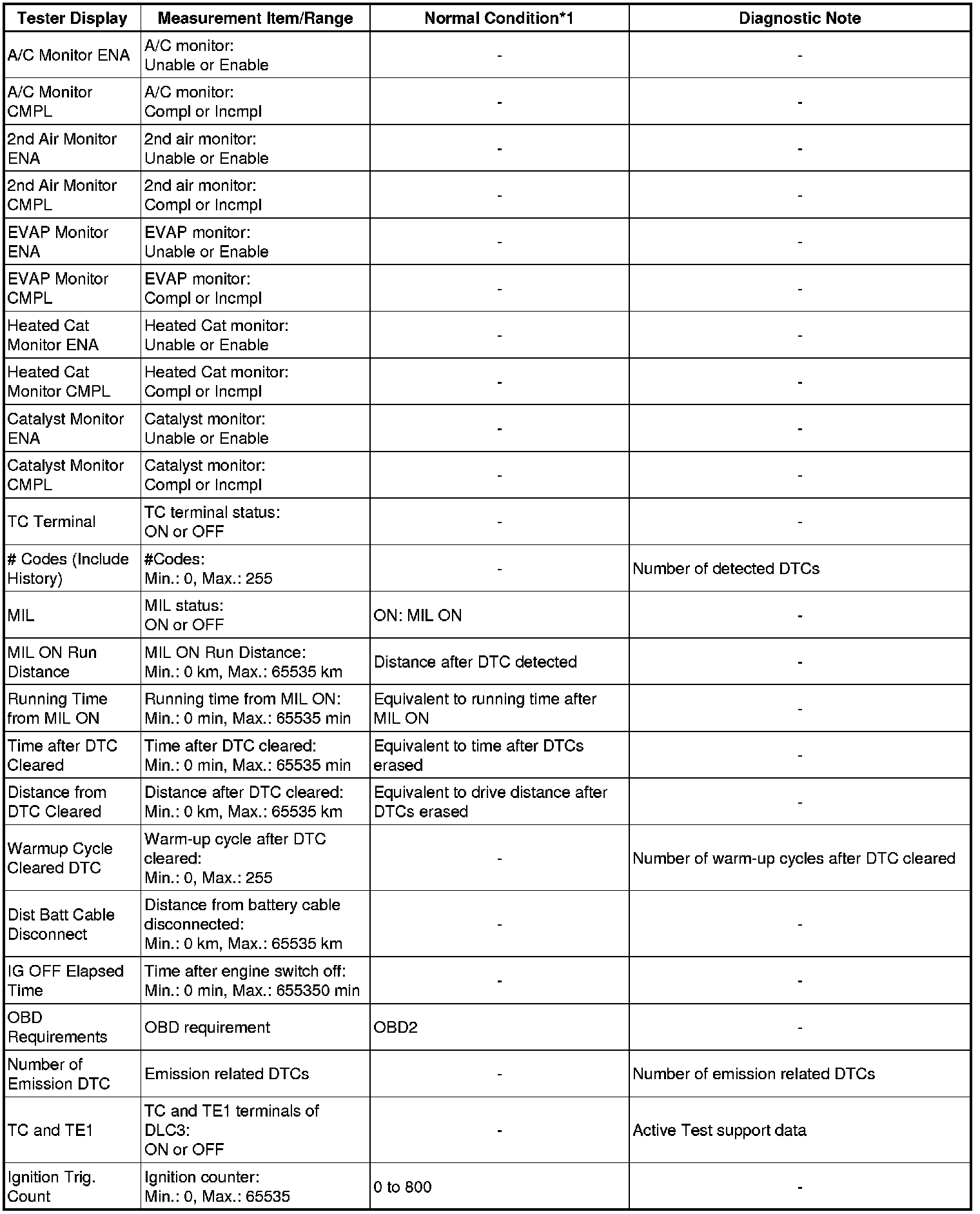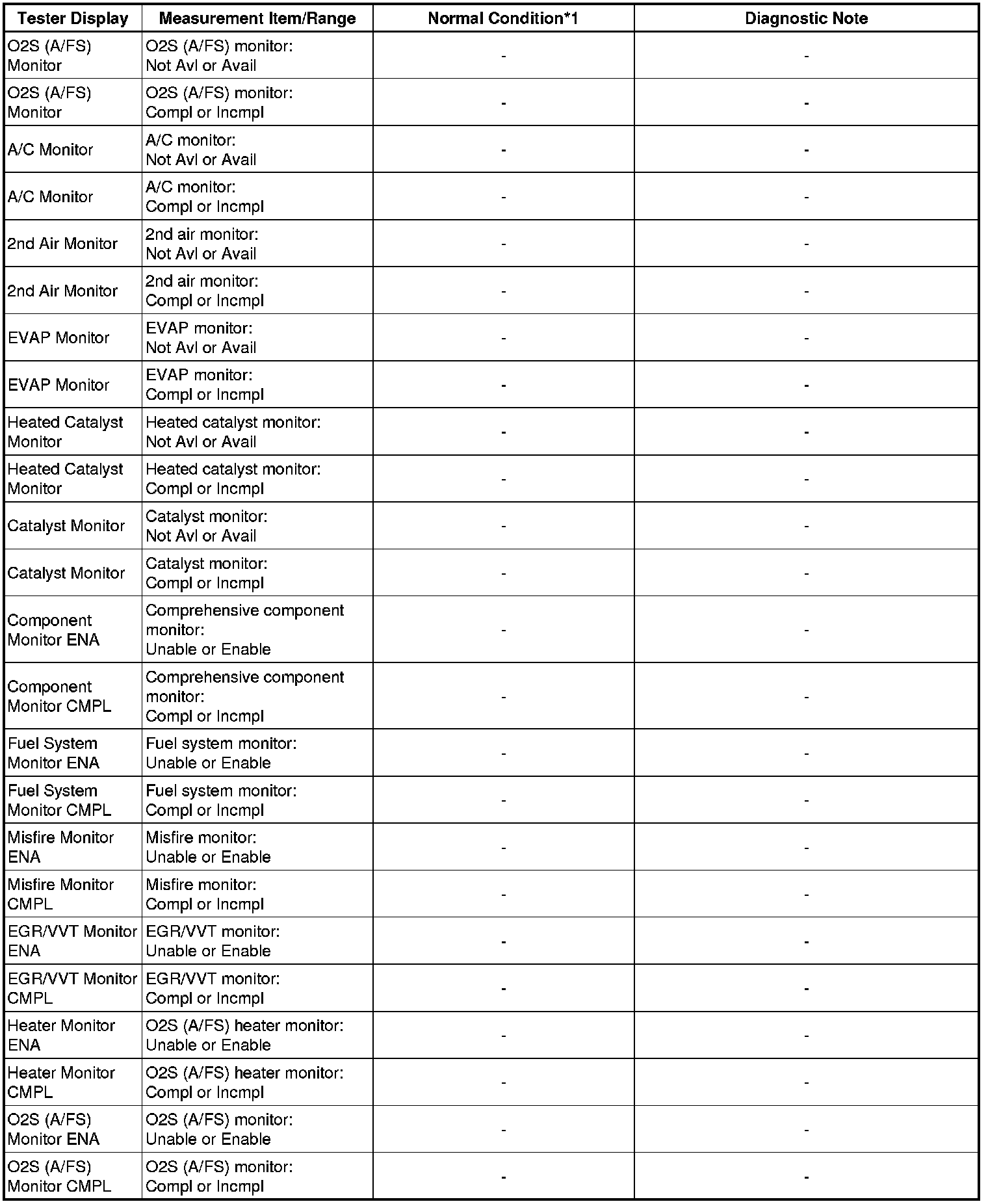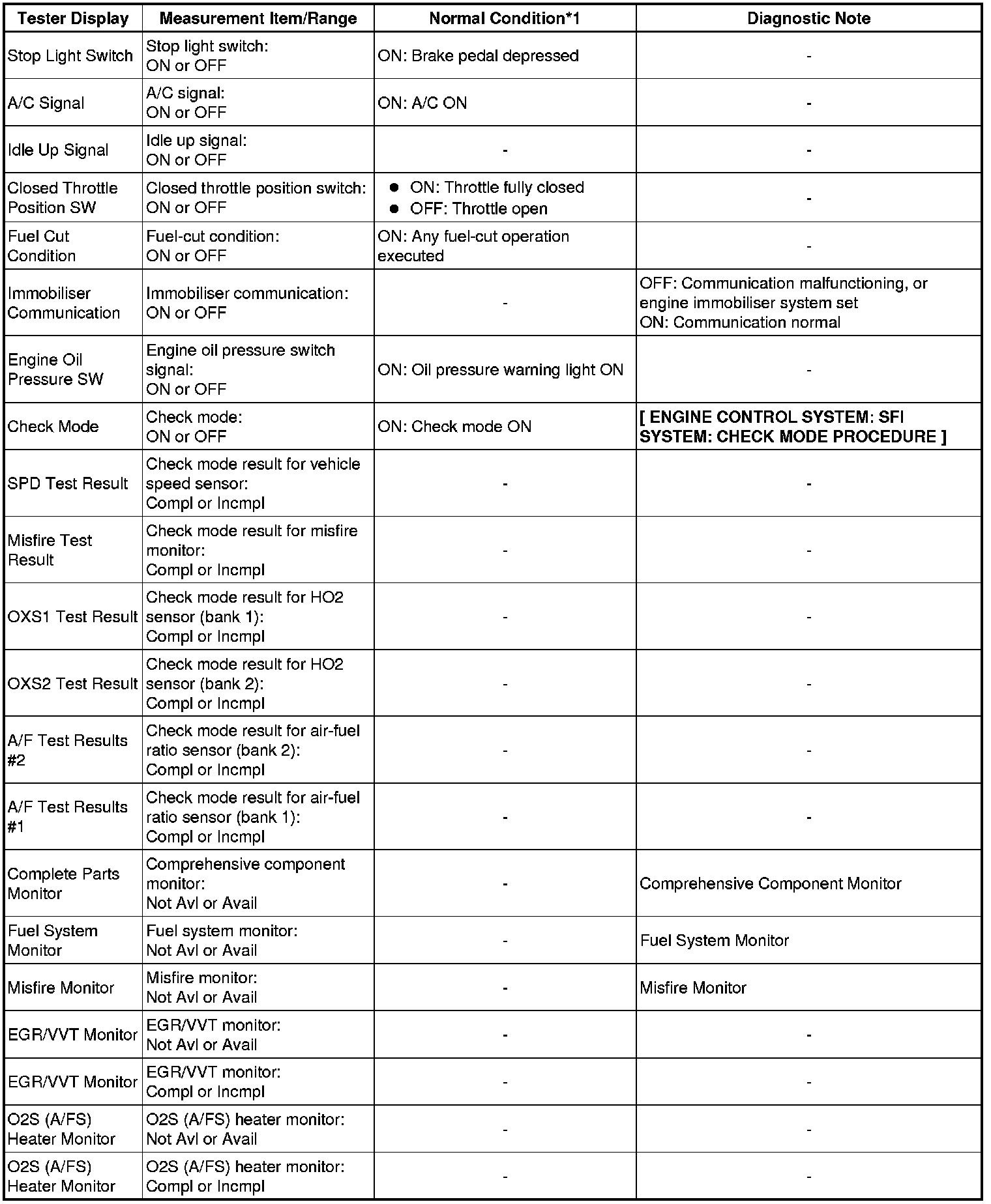* *1: If no idling conditions are specified, the transmission gear selector lever should be in the N or P position, and the A/C switch and all accessory switches should be OFF.