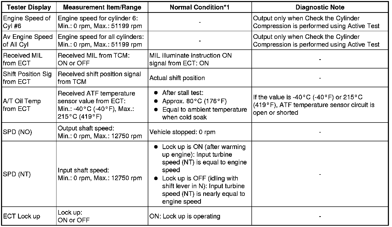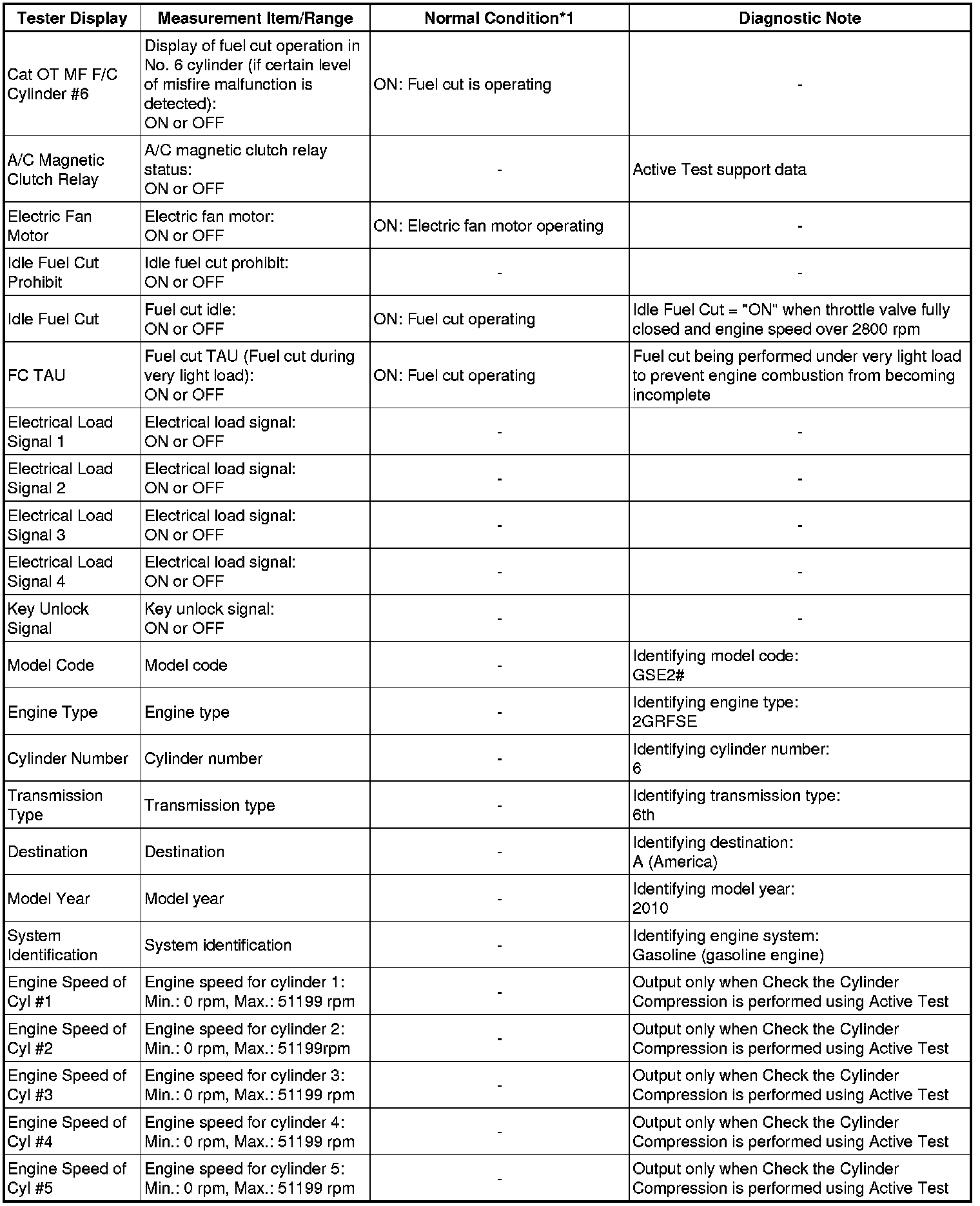 If the results are not displayed normally, select the display items from the Data List before performing the Active Test. Select the following menu items: Compression / Engine Speed of Cyl #1 to #6, Avg. Engine Speed of All Cyl.