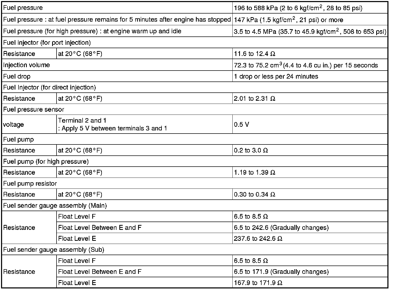SERVICE SPECIFICATIONS: 2GR-FSE FUEL: SERVICE DATA
