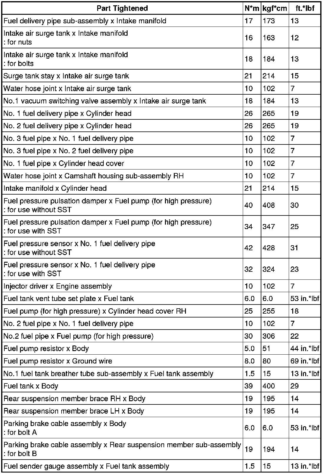 SERVICE SPECIFICATIONS: 2GR-FSE FUEL: TORQUE SPECIFICATIONS