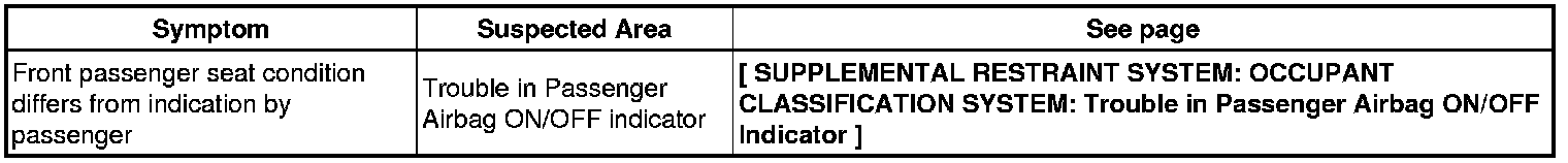 SUPPLEMENTAL RESTRAINT SYSTEM: OCCUPANT CLASSIFICATION SYSTEM: PROBLEM SYMPTOMS TABLE