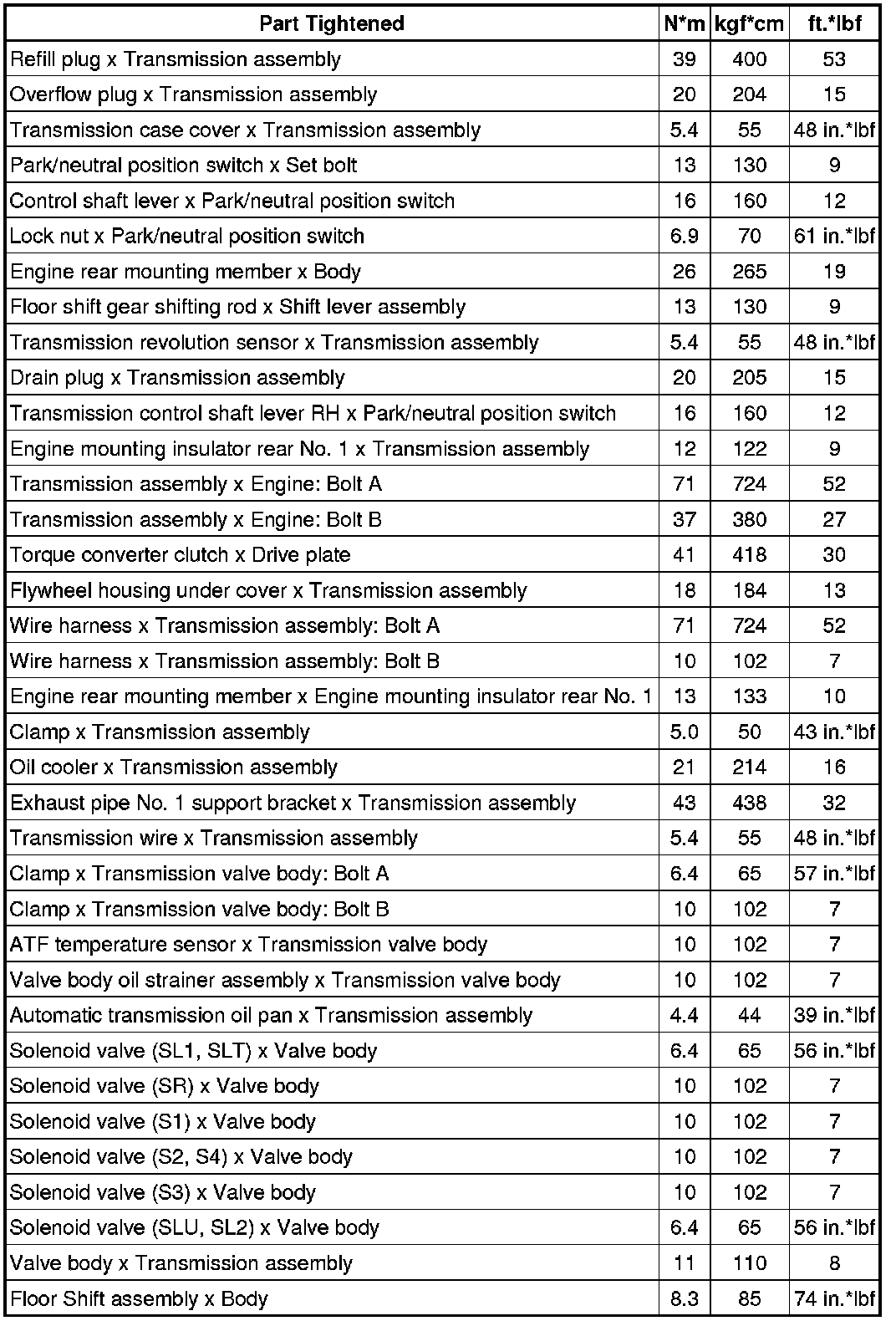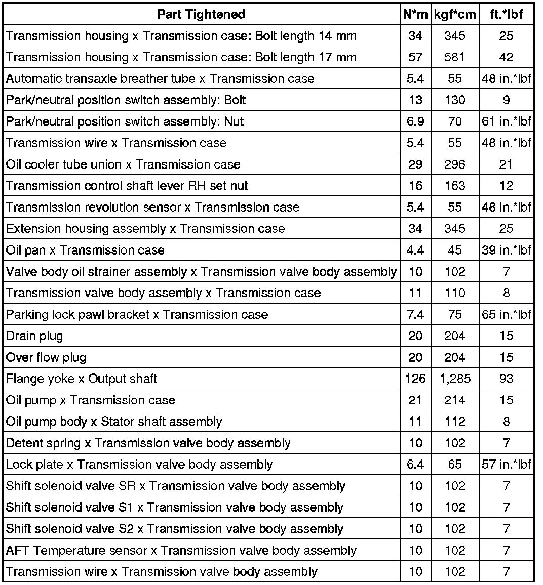 SERVICE SPECIFICATIONS: A760E AUTOMATIC TRANSMISSION: TORQUE SPECIFICATIONS