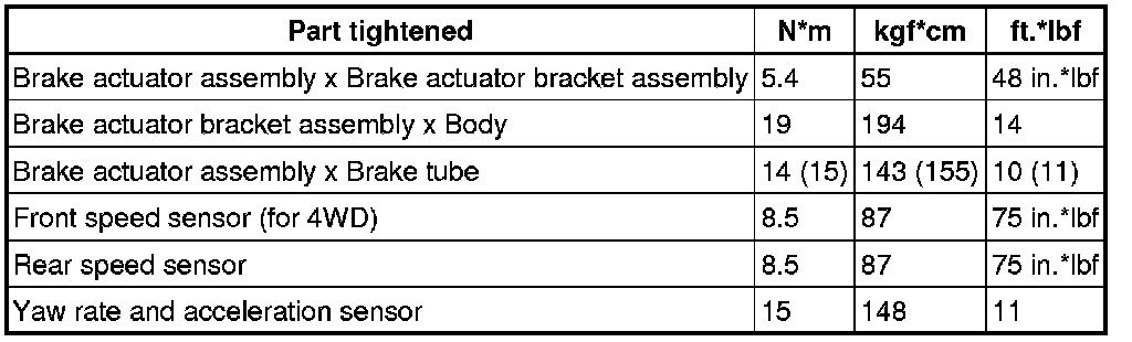 SERVICE SPECIFICATIONS: BRAKE CONTROL: TORQUE SPECIFICATIONS