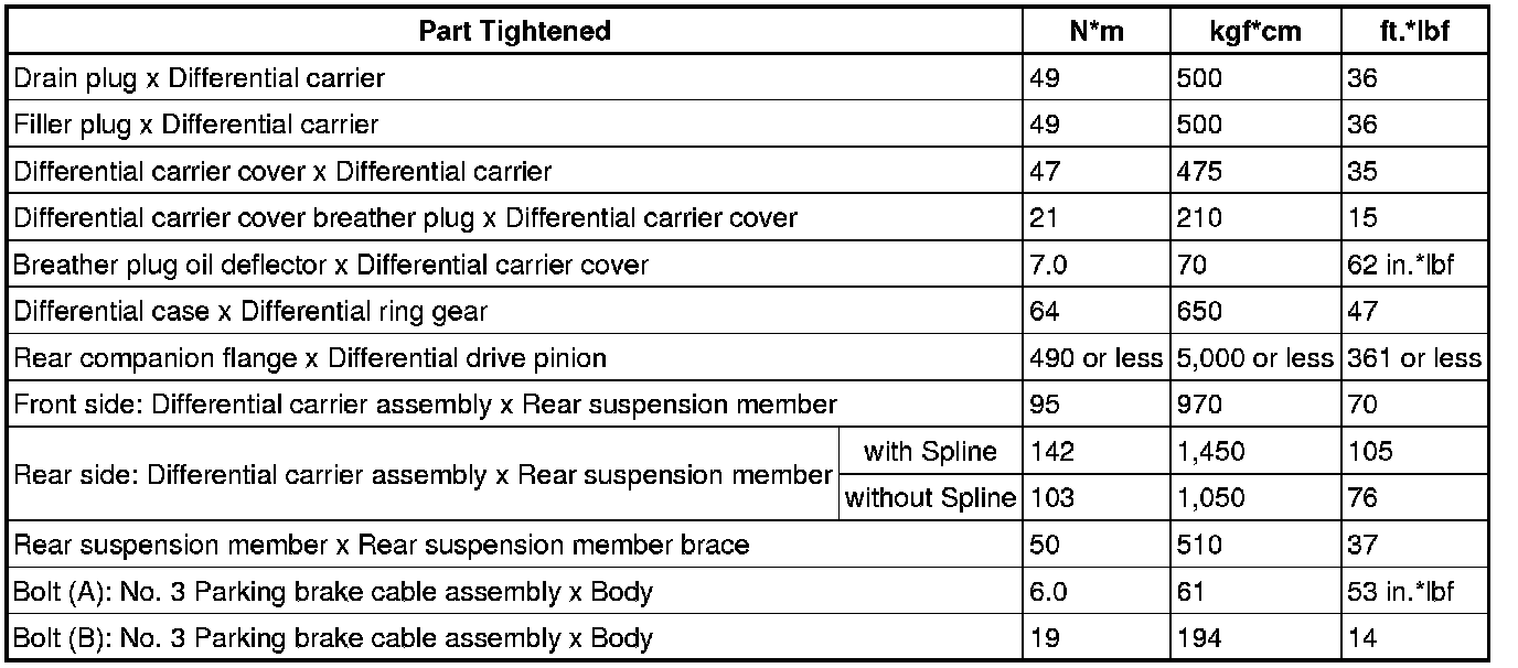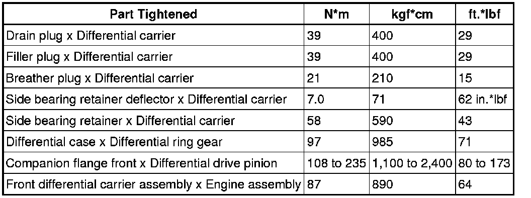 SERVICE SPECIFICATIONS: DIFFERENTIAL: TORQUE SPECIFICATIONS