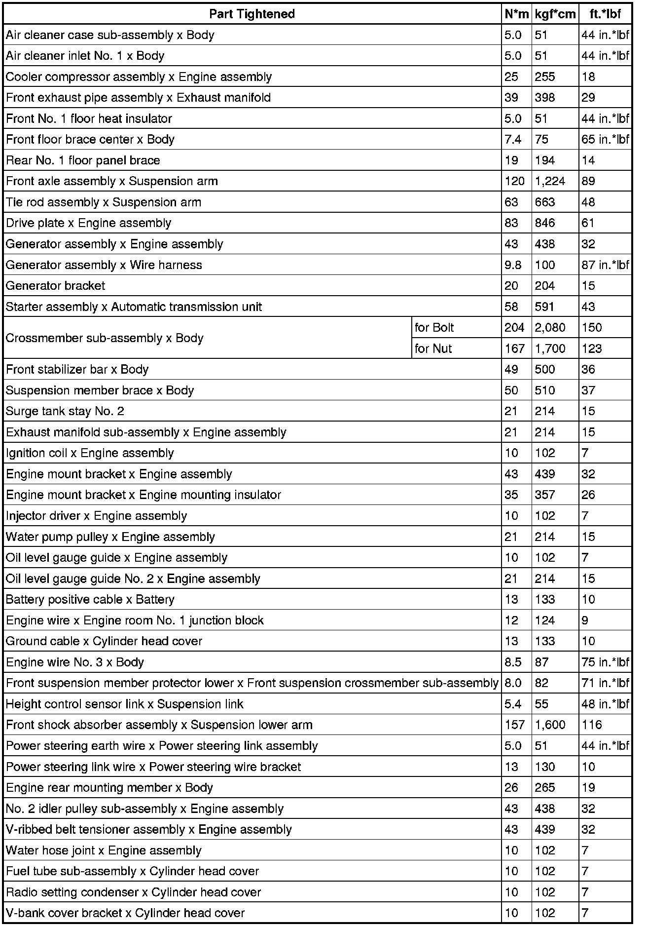 Torque Specifications