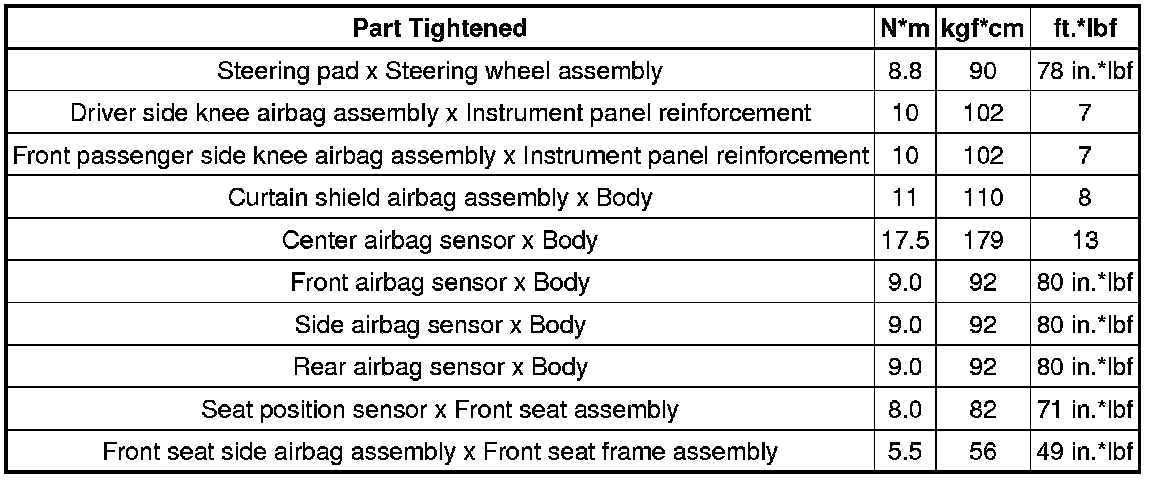 SERVICE SPECIFICATIONS: SUPPLEMENTAL RESTRAINT SYSTEM: TORQUE SPECIFICATIONS