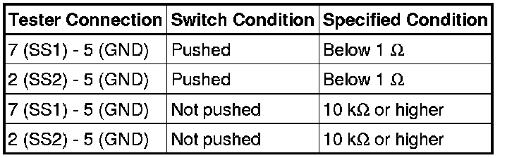 (c) Apply battery voltage between the terminals of the switch, and check the illumination condition of the switch.