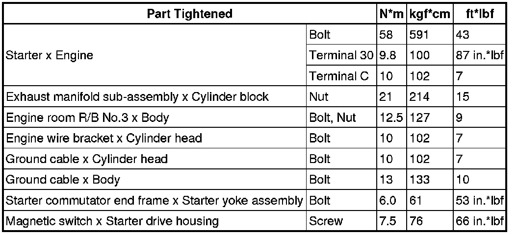 SERVICE SPECIFICATIONS: 2GR-FSE STARTING: TORQUE SPECIFICATIONS