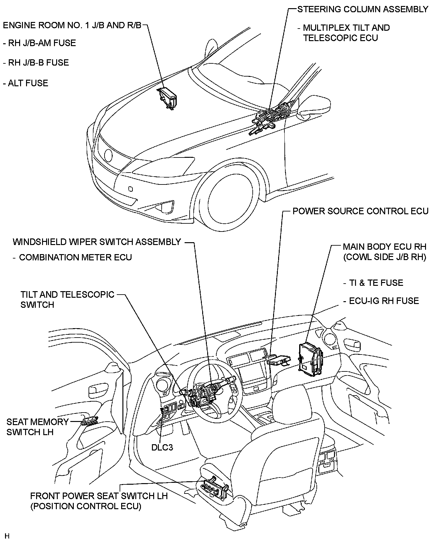 STEERING COLUMN: POWER TILT AND POWER TELESCOPIC STEERING COLUMN SYSTEM: PARTS LOCATION