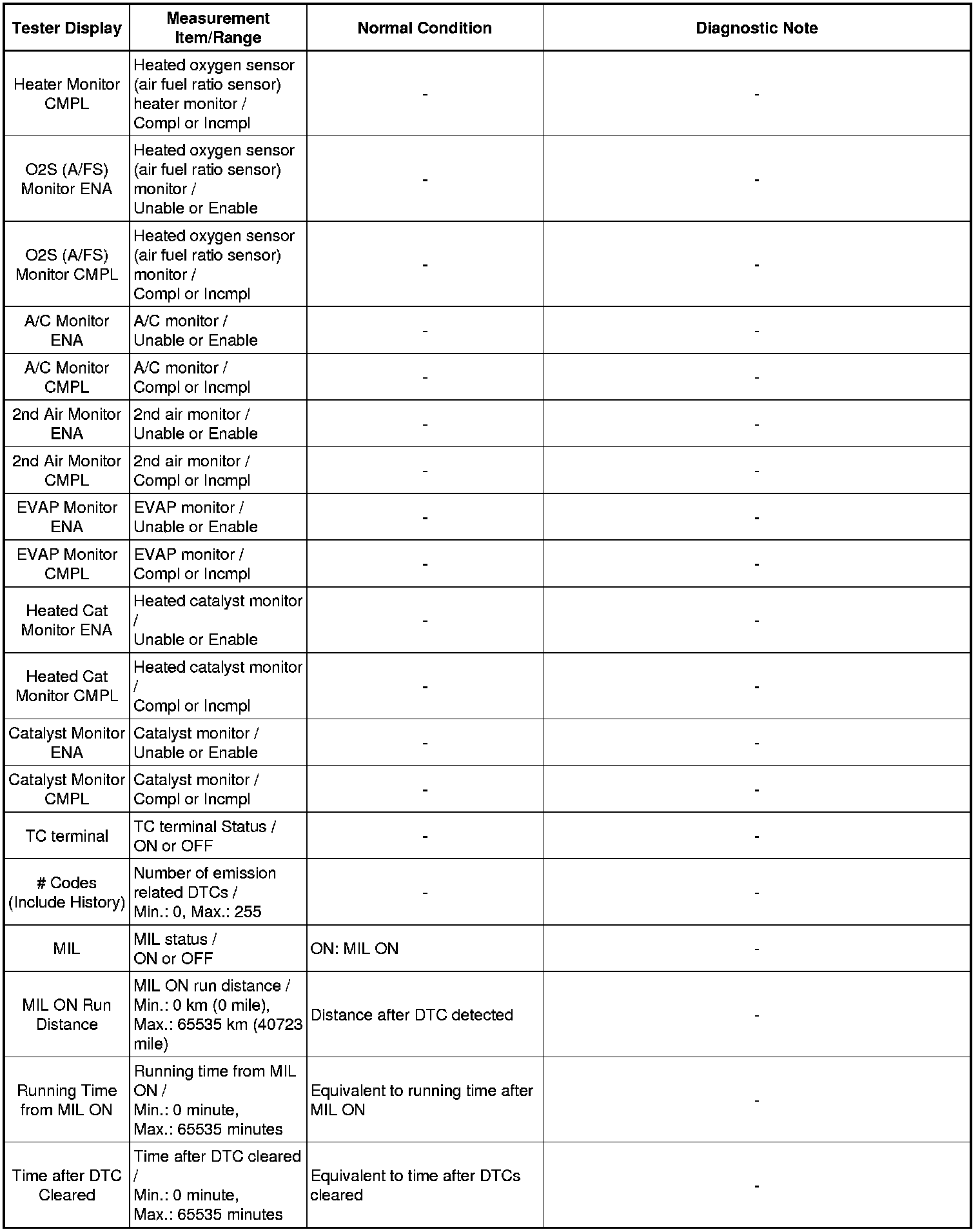 Using the Techstream to read the Data List allows the values or states of switches, sensors, actuators and other items to be read without removing any parts. This non-intrusive inspection can be very useful because intermittent conditions or signals may be discovered before parts or wiring is disturbed. Reading the Data List information early in troubleshooting is one way to save diagnostic time.