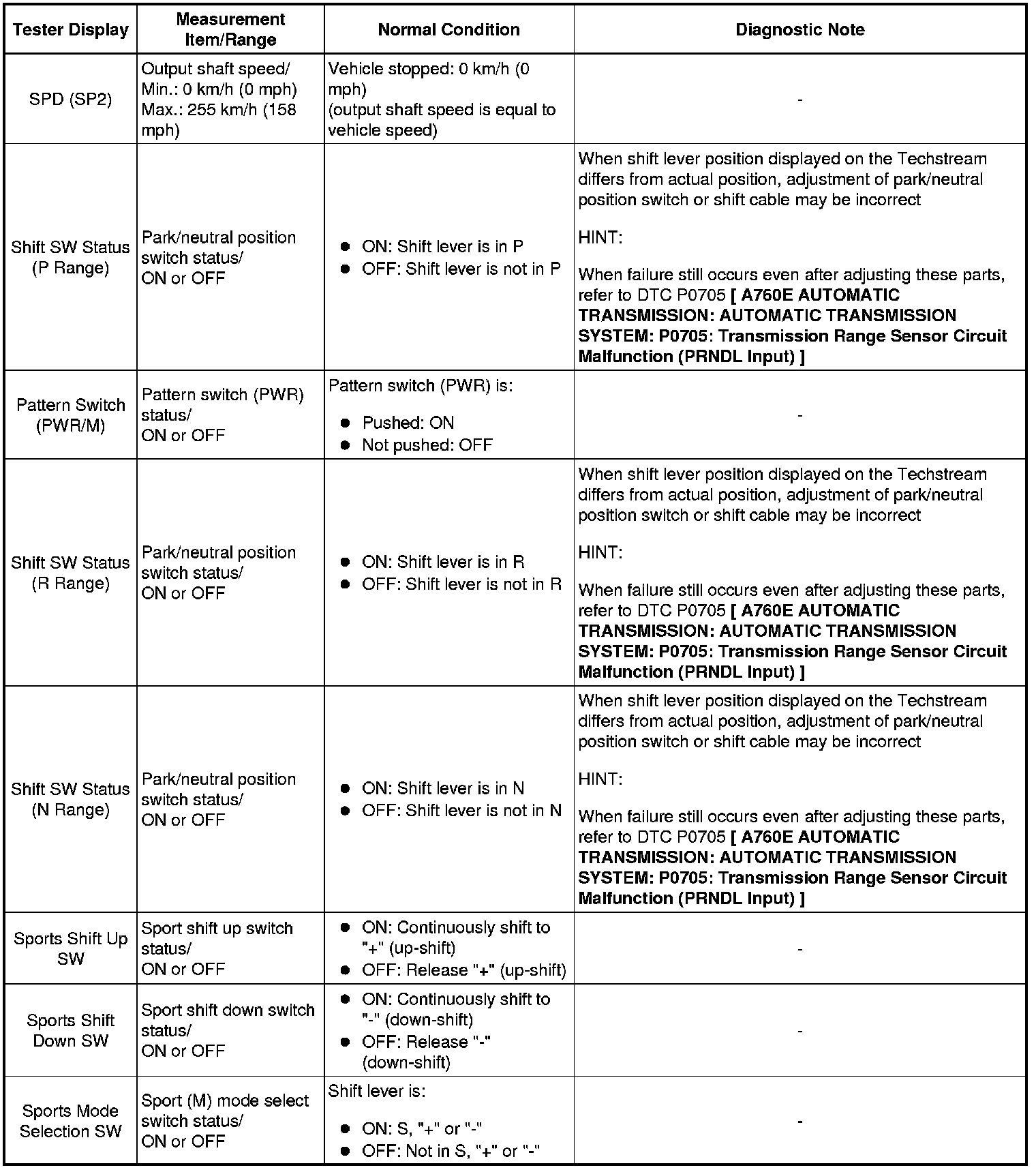 A760E AUTOMATIC TRANSMISSION: AUTOMATIC TRANSMISSION SYSTEM: DATA LIST / ACTIVE TEST