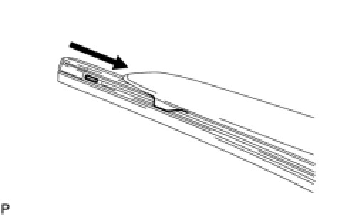 (b) Install the wiper rubber to the front wiper blade LH with the top of the rubber (curved end) facing the axis of the wiper arm.
