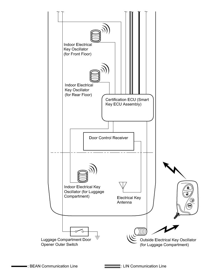 (b) Oscillator (each door electrical key oscillator, indoor electrical key oscillator (for front and rear floor), indoor electrical key oscillator (for luggage compartment), outside electrical key oscillator (for luggage compartment))