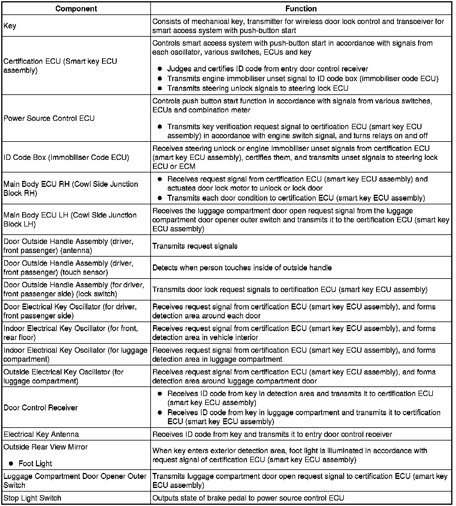 (a) The smart access system with push-button start has the following functions: