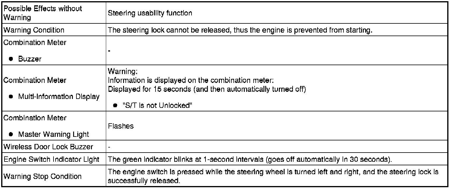 The steering lock cannot be released. In this situation, the following control is performed: