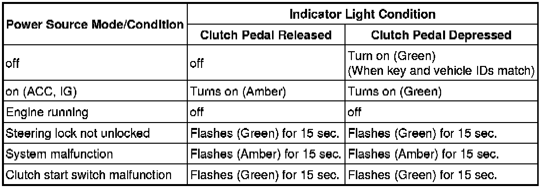* The amber and green LEDs are for the indicator lights. The driver can check the present power source mode and whether the engine can start in accordance with the illumination state of the indicator light.