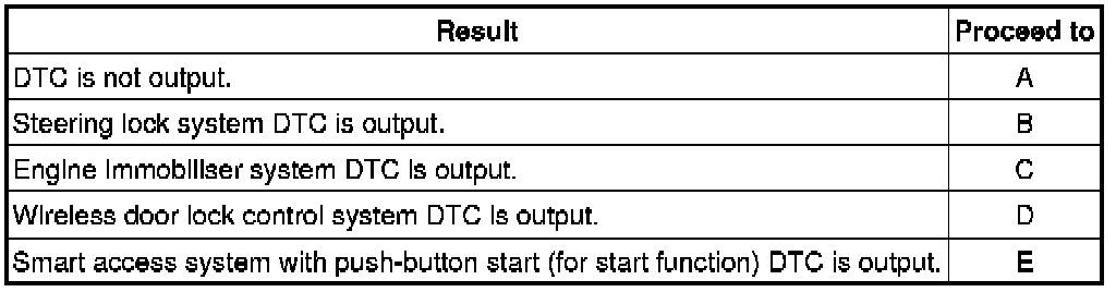 (b) Recheck for DTCs. Based on the DTCs output, try to cause the same steering lock system DTC, engine immobilizer system DTC, wireless door lock control system DTC or smart access system with push-button start (for start function) DTC to be output by simulating the symptoms indicated by the DTCs.