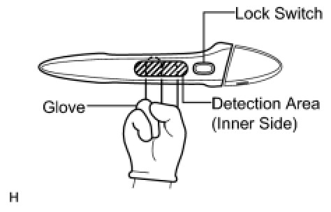 (5) Step 5: Inspect the door touch sensor. Wear protective gloves, set the system to unlock standby mode, and check that touching the inner side of the outside handle (the highlighted area in the illustration) with your finger causes the door to unlock.