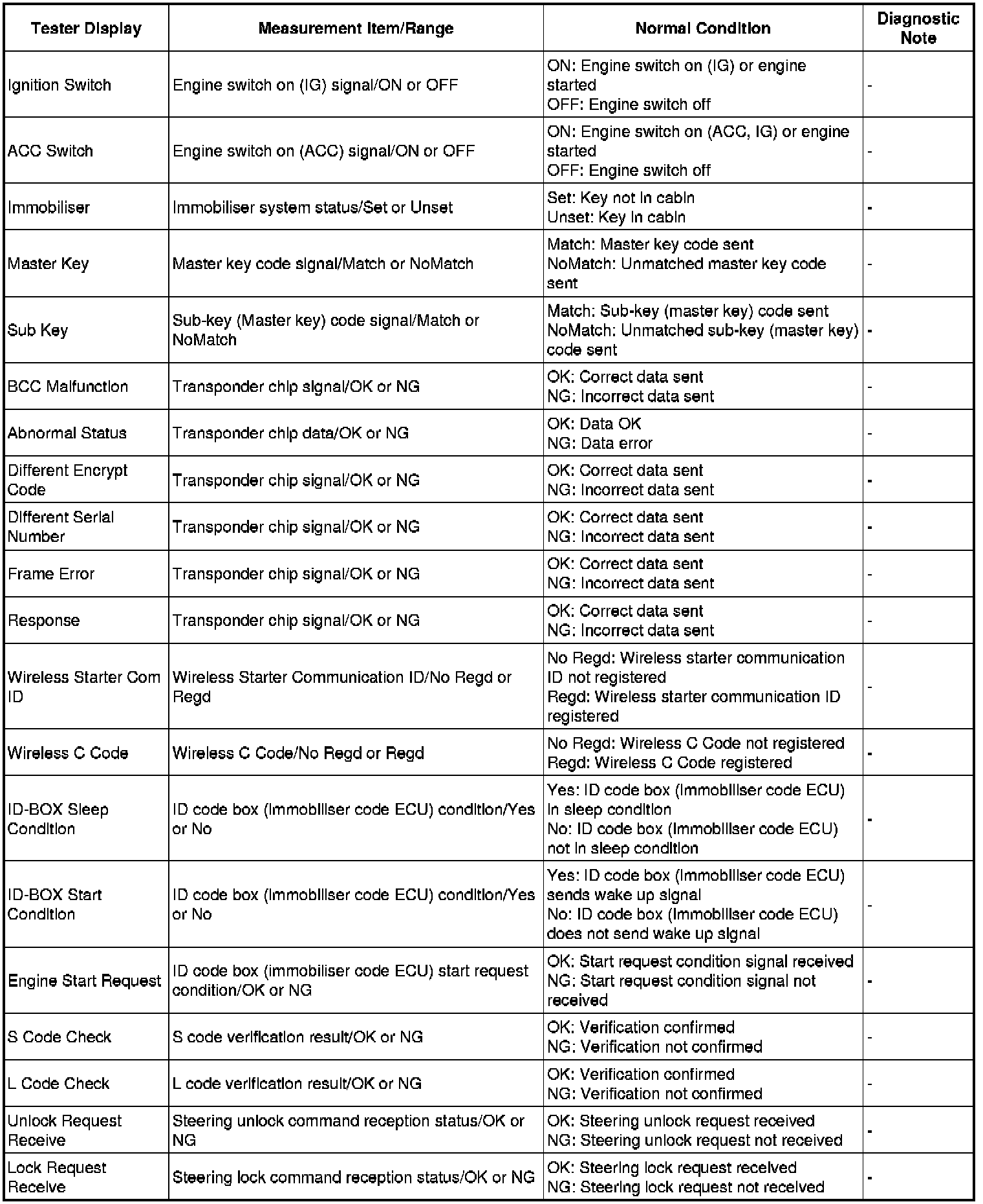 THEFT DETERRENT / KEYLESS ENTRY: ENGINE IMMOBILIZER SYSTEM: DATA LIST / ACTIVE TEST