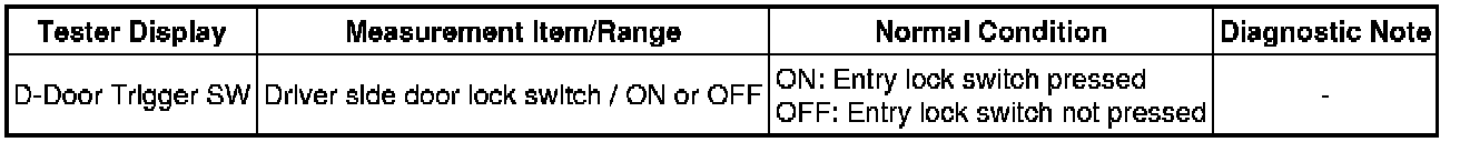 - Driver Side Door Entry Lock Function does not Operate