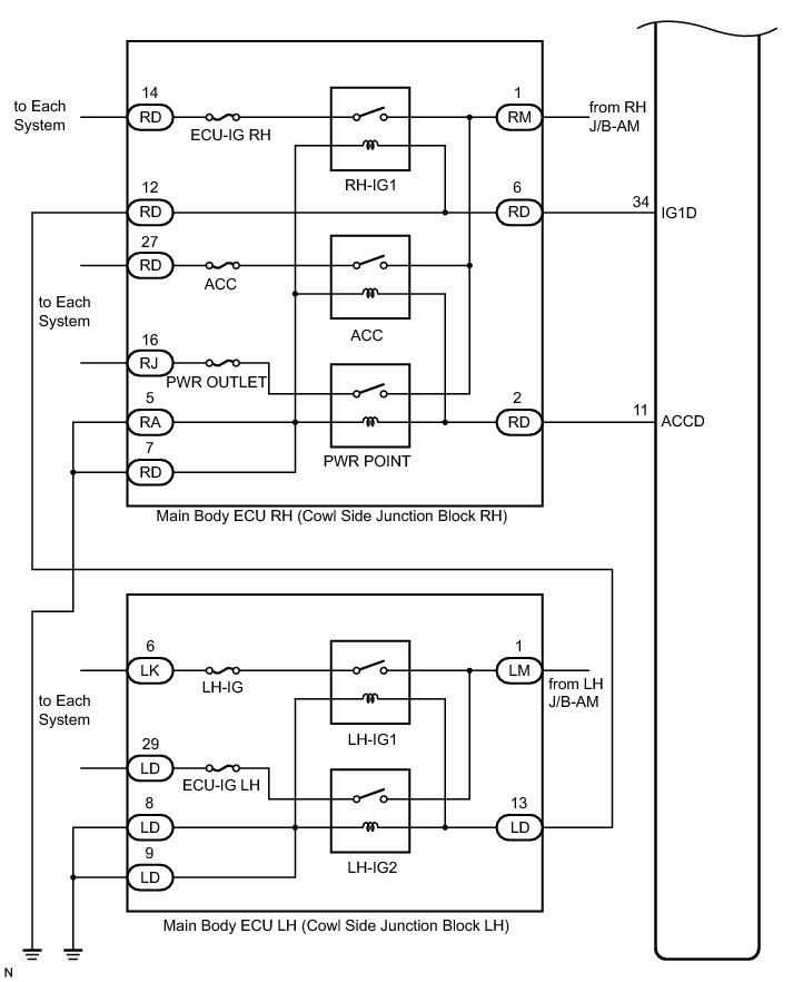4. CHECK MAIN BODY ECU RH (COWL SIDE JUNCTION BLOCK RH)