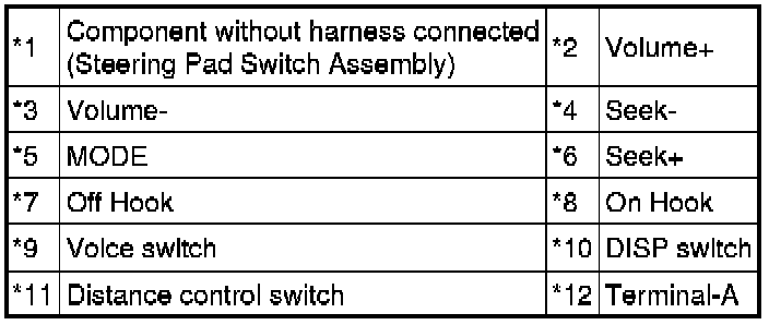 (1) Connect a positive (+) lead to terminal IL+2 and a negative (-) lead to terminal EAU of the steering pad switch assembly connector.
