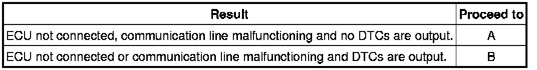 (2) (ECU unconnected, communication line malfunctioning) If any code is output, proceed to B.