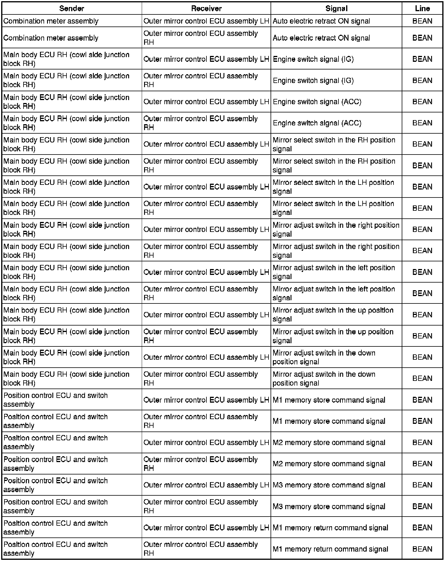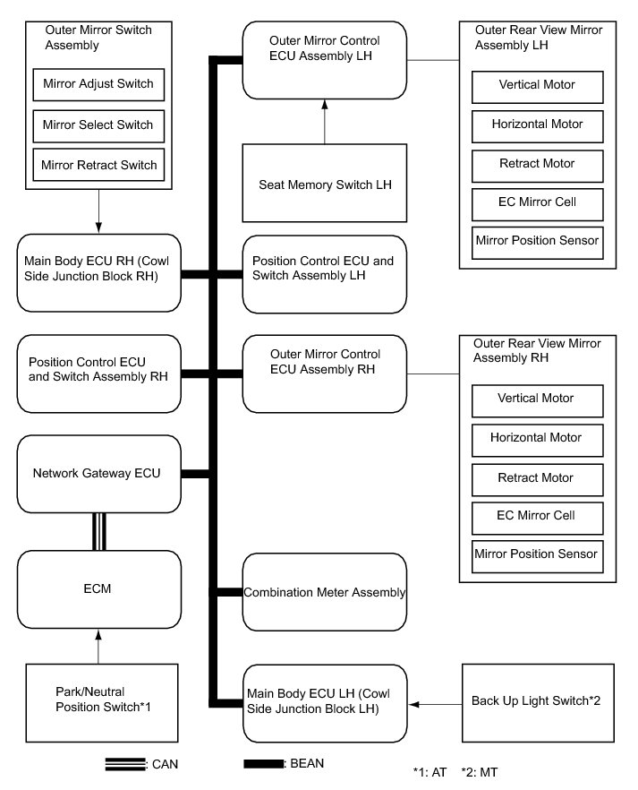 MIRROR (EXT): POWER MIRROR CONTROL SYSTEM (W/ Memory): SYSTEM DIAGRAM