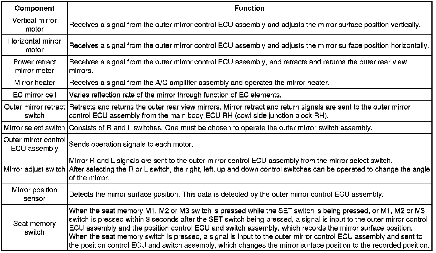 MIRROR (EXT): POWER MIRROR CONTROL SYSTEM (W/ Memory): SYSTEM DESCRIPTION