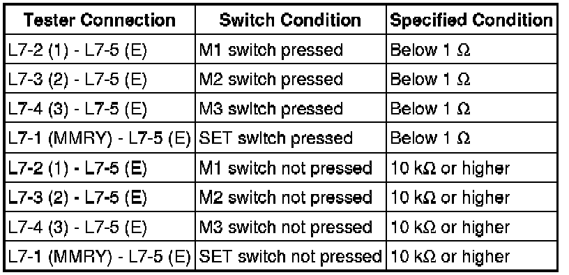 SEAT: SEAT MEMORY SWITCH: INSPECTION