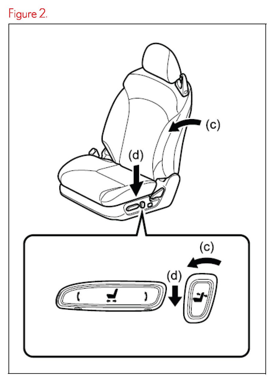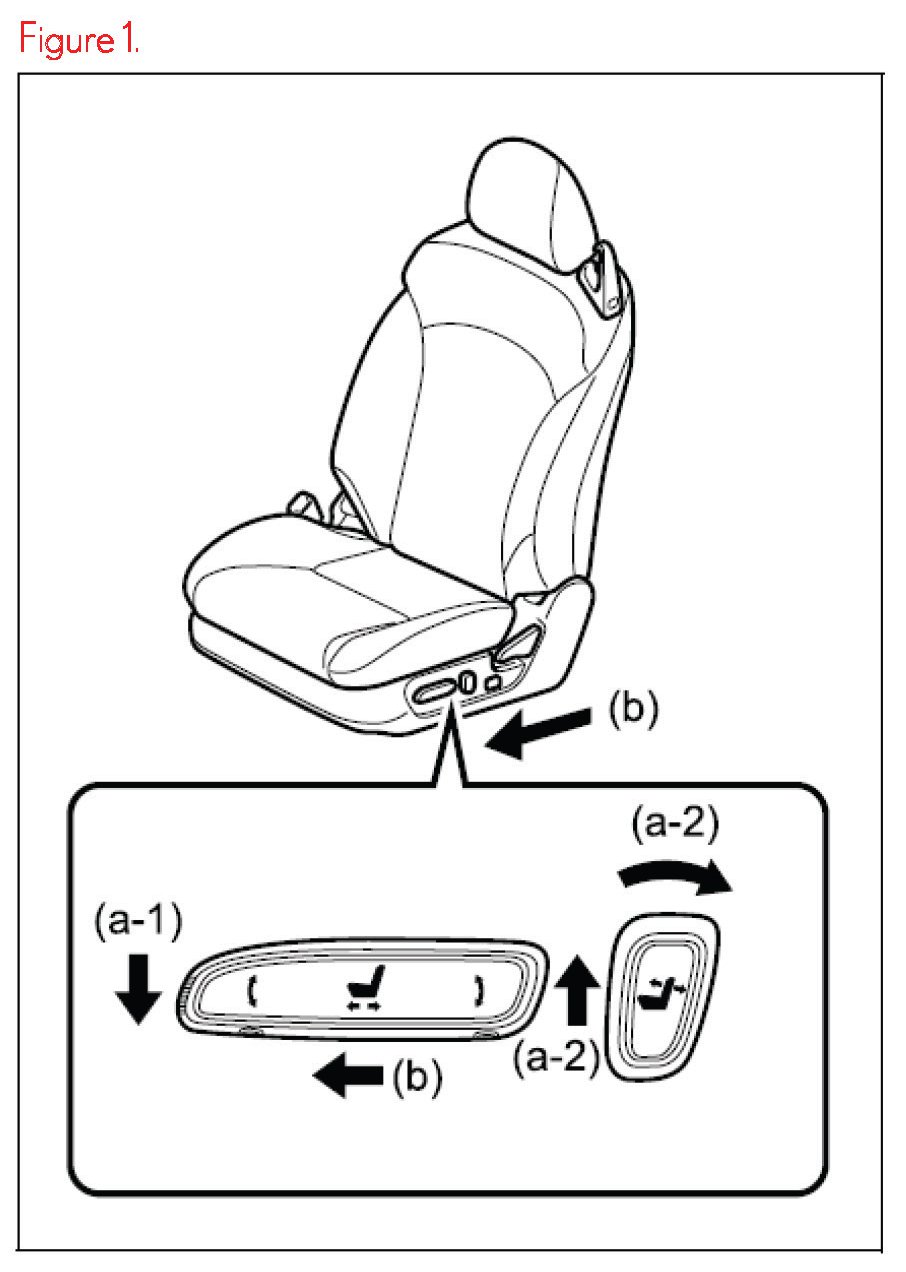 4. Push the seat position control switch forward, sliding the seat to the full forward or most forward position until a beep sound is emitted. Reference (b) in Figure 1.