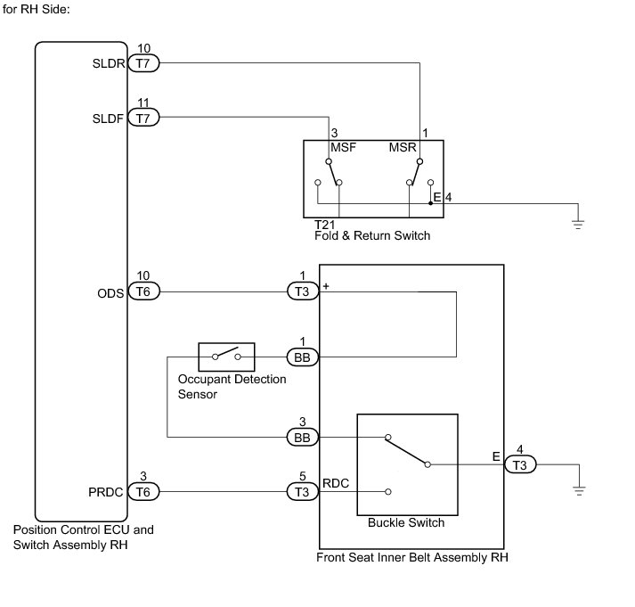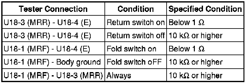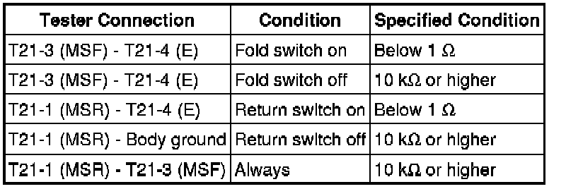 4. CHECK HARNESS AND CONNECTOR (POSITION CONTROL ECU AND SWITCH - FOLD & RETURN SWITCH)