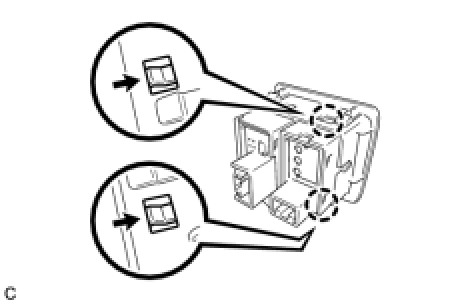 (a) Engage the 2 claws and install the VSC OFF switch to the switch base.