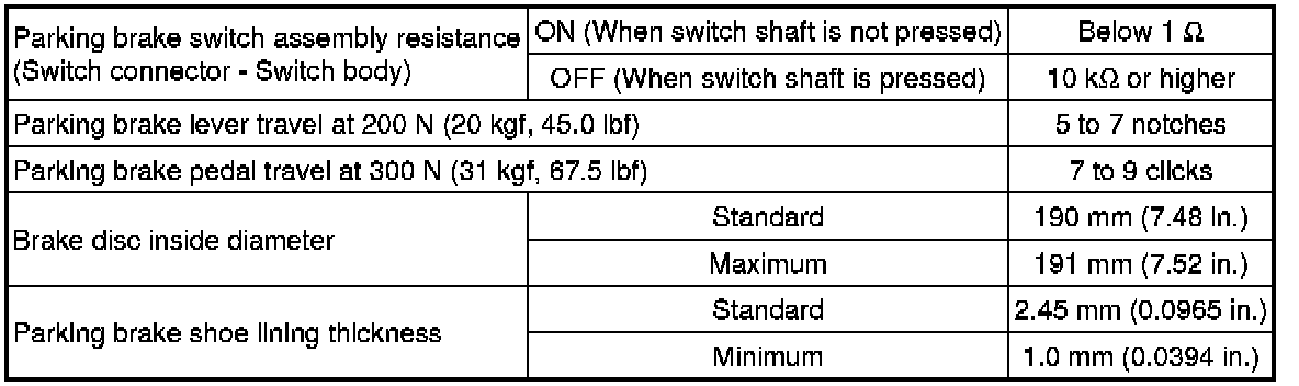 SPECIFICATIONS: PARKING BRAKE: SERVICE DATA