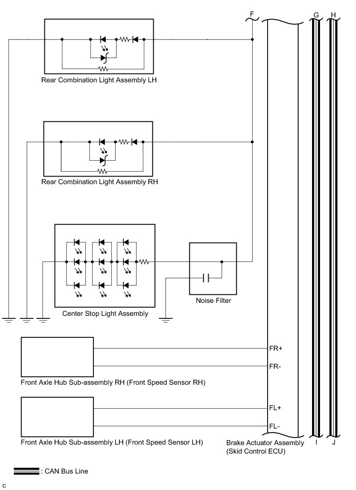 (f) This system judges the presence of a vehicle in front and the distance to it based on the signals from the radar sensor while the vehicle-to-vehicle distance control mode is operating. Using this information, the system informs the driver of any danger with the warning buzzer, performs brake control, and turns on the stop light when approaching the vehicle in front.