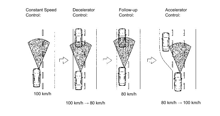 (a) The dynamic radar cruise control system has 2 cruise control modes: the constant speed control mode and vehicle-to-vehicle distance control mode.