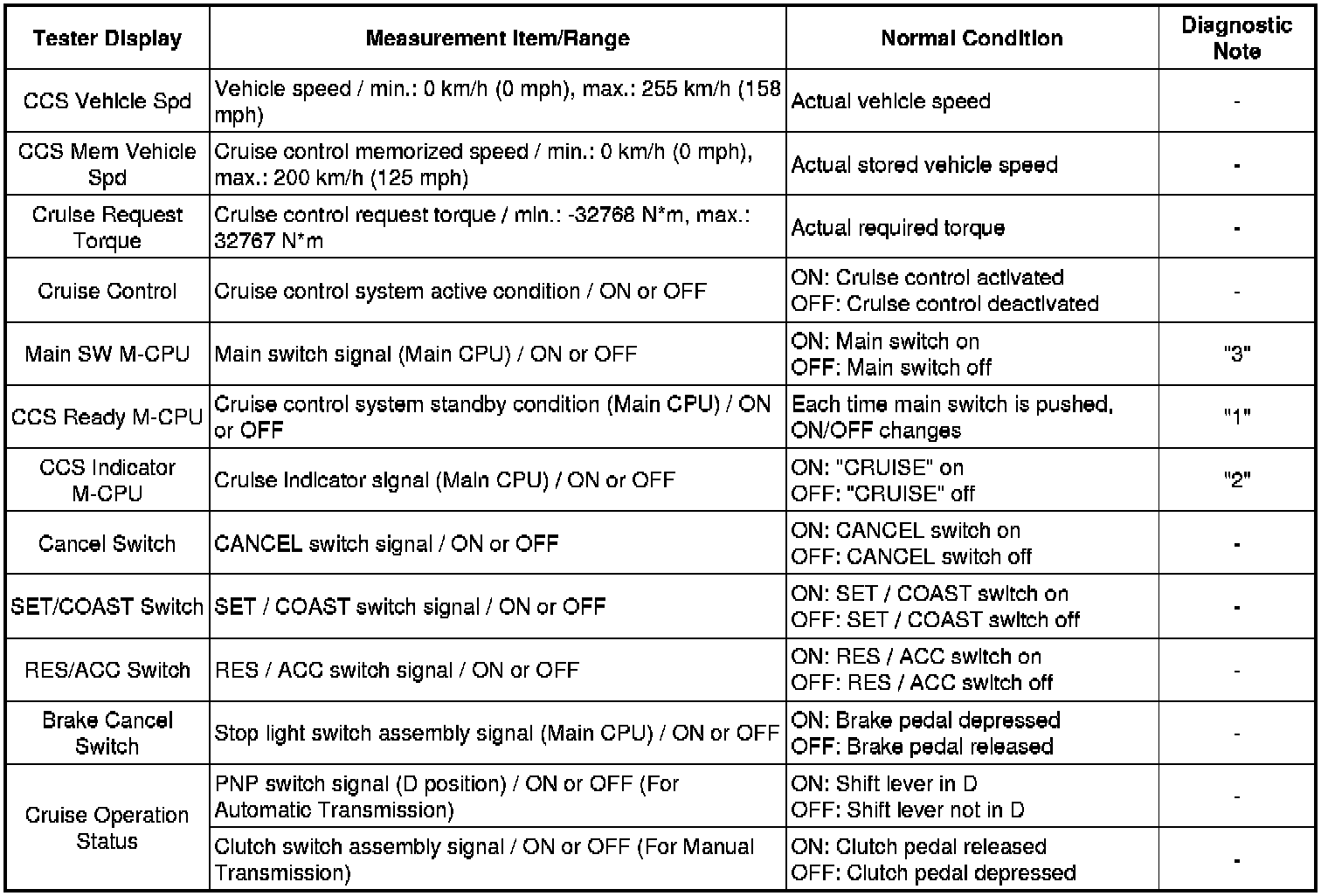 CRUISE CONTROL: CRUISE CONTROL SYSTEM: DATA LIST / ACTIVE TEST