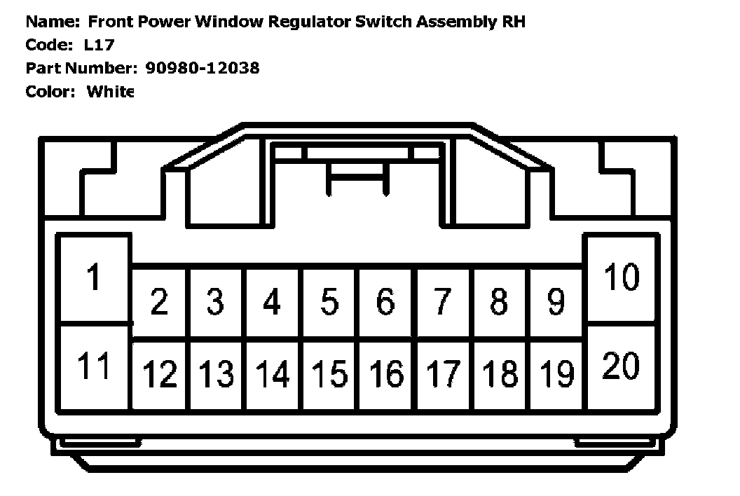 Front Power Window Regulator Switch Assembly