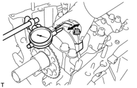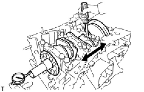 (b) Using a dial indicator, measure the thrust clearance while prying the crankshaft back and forth with a screwdriver.