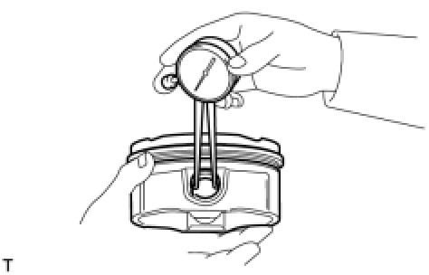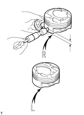 (a) Using a micrometer, measure the piston diameter at right angles to the piston center line where the distance from the piston end is as specified.