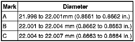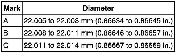 (c) Subtract the piston pin diameter measurement from the piston pin hole diameter measurement.