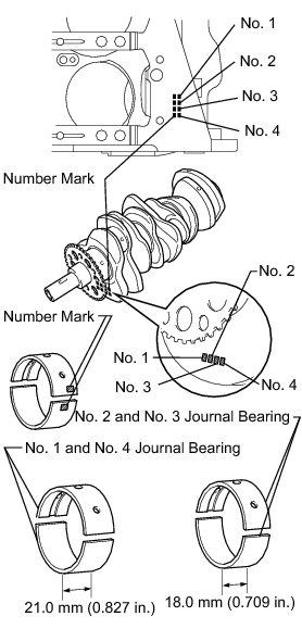 (1) If the diameter is not as specified, check the oil clearance. If necessary, replace the crankshaft.