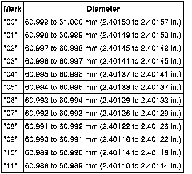 60.988 to 61.000 mm (2.4011 to 2.4016 in.)