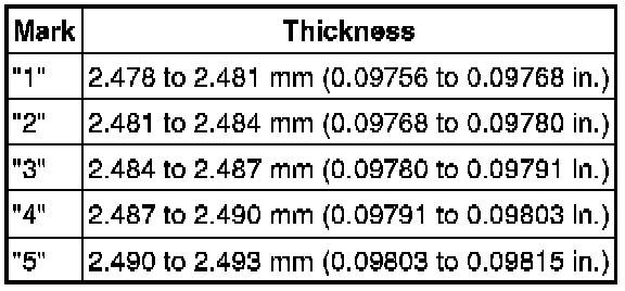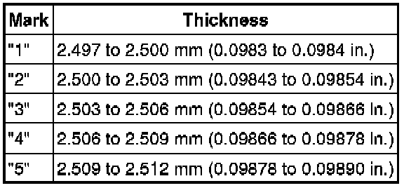 If replacing a bearing, replace it with one that has the same number as its respective connecting rod cap. Each bearing standard thickness is indicated by a number (1, 2, 3 or 4) marked on its surface.