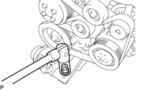 (a) Temporarily install the V-ribbed belt tensioner with the 5 bolts.