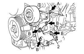 (b) Install the V-ribbed belt tensioner by tightening the bolt 1 and bolt 2 in the order shown in the illustration.