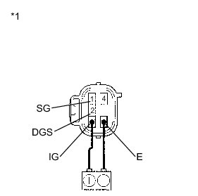 (2) Allow exhaust gas (NOx) to travel to the sensing portion of the smog ventilation sensor, and measure the resistance between terminals 1 (SG) and 4 (DGS1).
